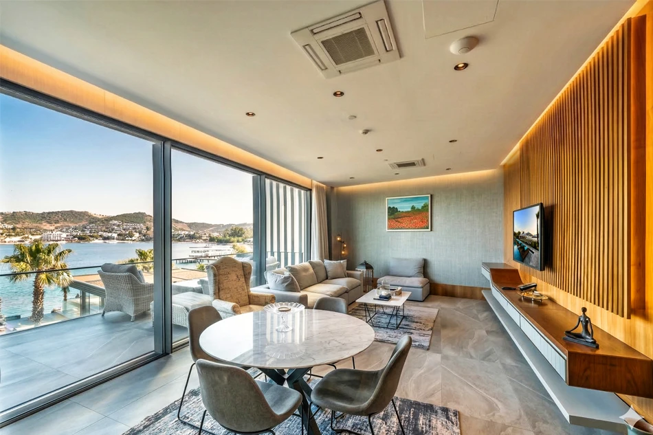 265 m² genişliğe sahip Arts Residence odası, 3 yatak odası ve 3 banyosu ile konforu üst seviyeye taşırken, kısmi deniz manzaralı 3 balkonu ve teraslı, tam deniz manzarasına sahip ferah oturma alanıyla eşsiz bir yaşam deneyimi sunar. Maksimum 6 kişilik konaklama kapasitesine uygun olan bu özel oda, bağlantılı oda seçeneği sayesinde hem aileler hem de birlikte seyahat eden gruplar için ideal, geniş ve ayrıcalıklı bir konaklama alanı sağlar.